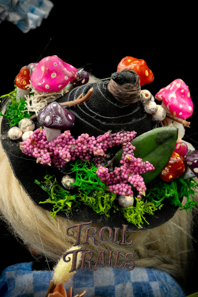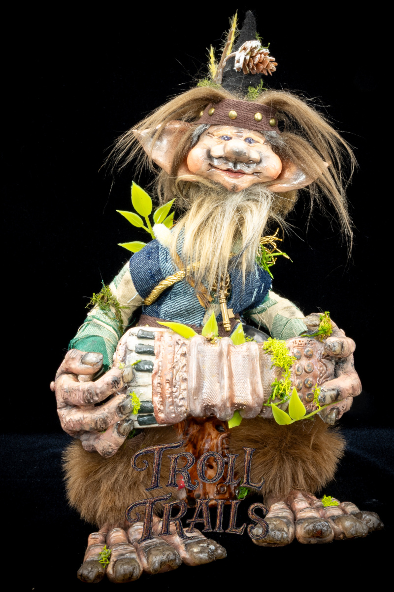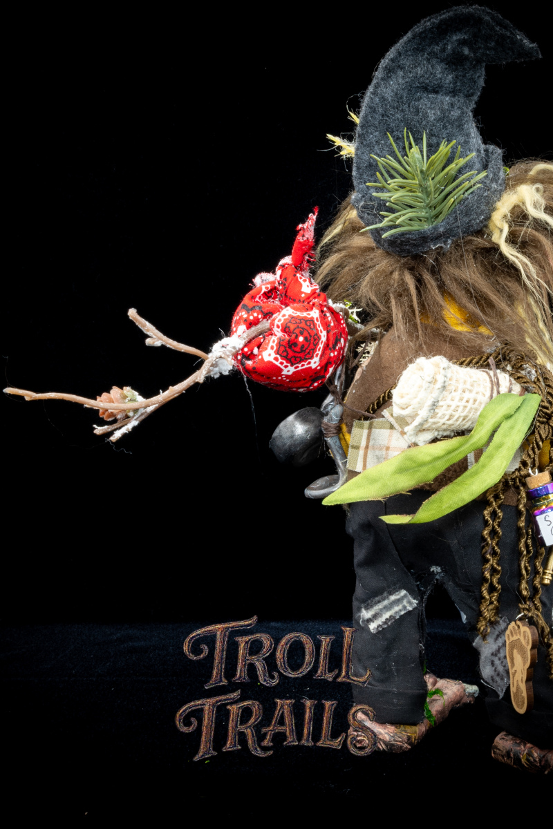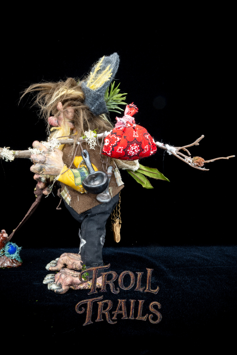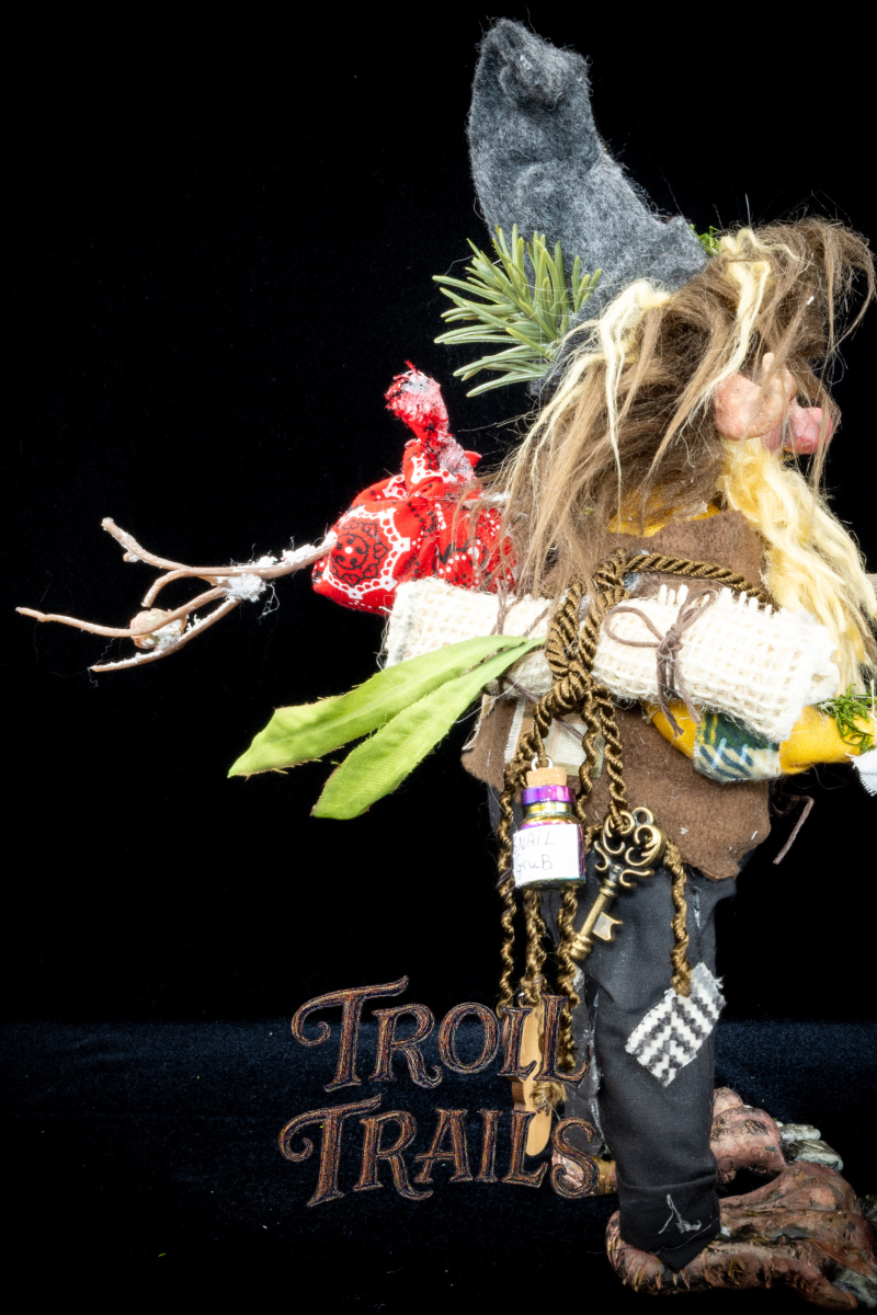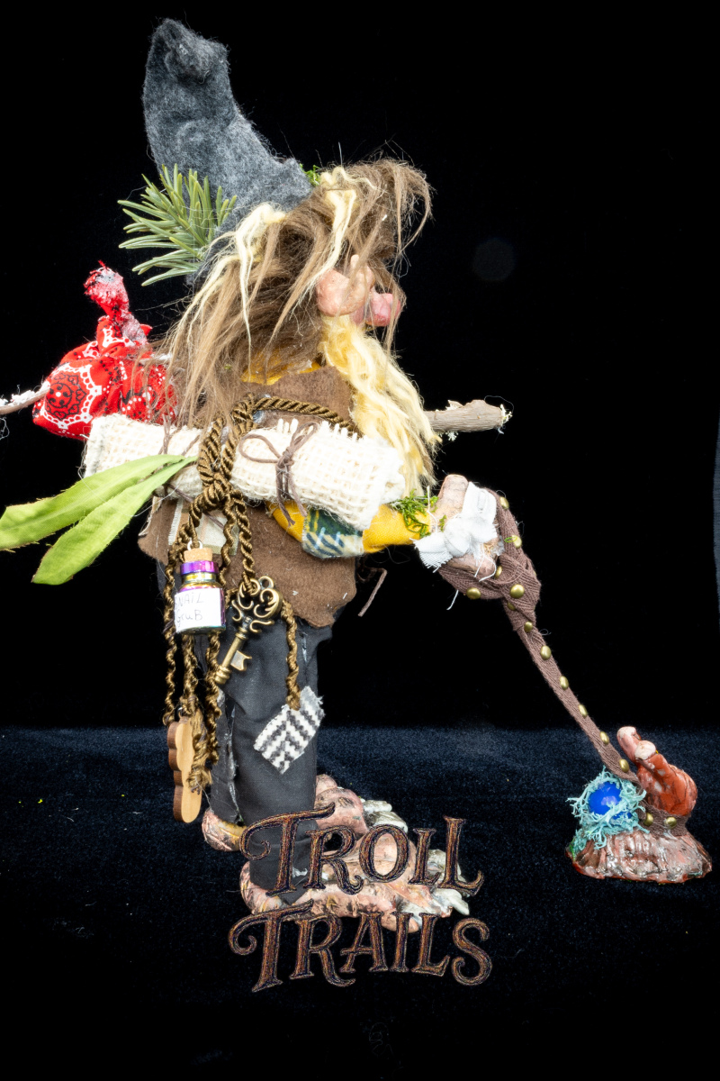 Each troll’s head, hands, feet, body, clothing are all hand made and hand constructed. Some trinkets are hand selected and purchased to add to the troll’s personality, however, we try to create everything when practically possible by hand.