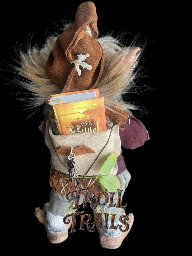NOTE: Riccardo was a custom Troll Trails troll that was created as a retirement gift. His customizations included is story background, guitar, bible and other trinkets.